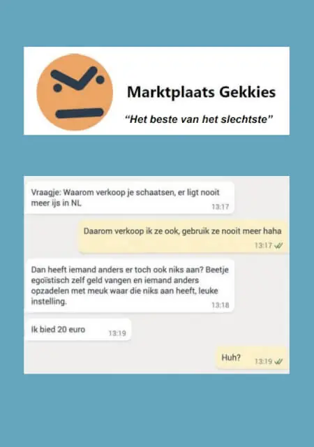 Of je nu zelf ooit een Playstation verkocht hebt aan iemand die wilde ruilen met een gebruikte fietspomp, of gewoon zin hebt om even ongegeneerd te lachen: Marktplaats Gekkies is jouw nieuwe favoriete plekje. Letterlijk.