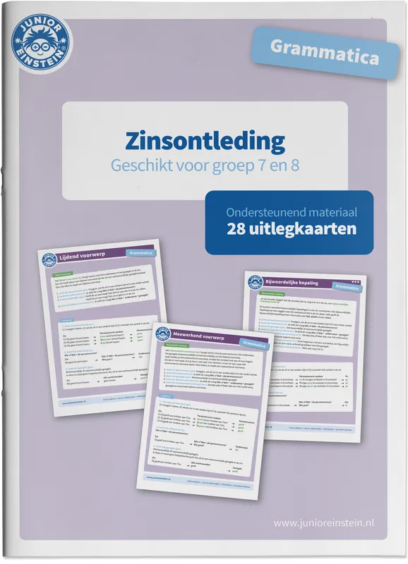 Leer alle (grammatica/taal)regels rondom zinsontleding. Een zin bestaat uit verschillende delen. Bijvoorbeeld het onderwerp, het gezegde of de persoonsvorm. Een zin kunnen verdelen in de juiste delen, noemen we zinsontleding. Zinsontleding geeft inzicht in de structuur van de taal. Je weet welke woorden bij elkaar horen en in welke volgorde ze in een zin horen te staan. Zo krijg je een goed lopende zin en spreek en schrijf je de Nederlandse taal op de juiste manier. De uitlegkaarten in dit boek laten door middel van simpele en duidelijke voorbeelden zien welke regels uw kind moet toepassen om een zin in de juiste zinsdelen te ontleden. De opmaak van de uitlegkaarten is helder en past bij de belevingswereld van uw kind. Dit zorgt ervoor dat de regels voor zinsontleding makkelijker worden geleerd en geautomatiseerd. Dat maakt het leren verantwoord én leuk!